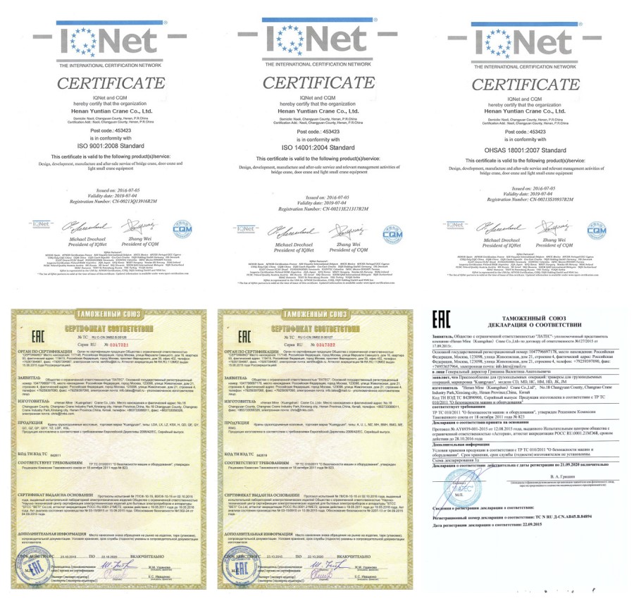 Voimme toimittaa sinulle kaikenlaisia teollisuuden nostureita 0,25 tonnista 900 tonniin, pass GB / T 19001-2000 idt ISO 9001: 2000, GB / T 24001-2004 idt ISO 14001: 2004, GB / T 28001-2001, OHSAS 18001: 1999, CE, GOST, SGS, TUV, BV ja niin edelleen. Olemme vienneet nosturimme Australiassa, Bangladeshissa, Irakissa, Pakistanissa, Filippiineillä, Yhdysvalloissa, Egyptissä, Intiassa, Turkmenistanissa, Singaporessa, Etiopiassa, Etelä-Afrikassa, Saudi-Arabiassa, Maltassa, Brasiliassa, Jordaniassa, Kolumbiassa, Kamerunissa, Sri Lankassa, Bruneissa, Indonesiassa ja niin edelleen, Afrikassa, Kanadassa, Uruguayssa, Bahrainissa, Thaimaassa, Kazakstanissa, Saksassa, Sultaniassa, Chilessä, Omanissa, Romaniassa, Malesiassa, yhteensä yli 100 maata, saimme hyvän vahvistuksen ja toivotti heidät tervetulleiksi, ja olemme yhä enemmän asiantuntija nosturin vientiä varten. pidämme aina periaatetta "mitä korkeammalla luottomme on, sitä voimakkaammaksi yrityksemme on". Ja kohdella jokaista asiakasta vilpittömästi. Olemme erittäin iloisia voidessamme ystäviäsi tulla koko maailmasta ja toivomme luoda pitkän aikavälin hyvää yhteistyötä "nopealla, uskomalla ja laadukkaalla palvelulla"!